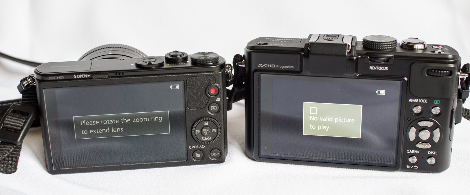 This is even clearer to see when the camera is viewed from the rear (GM1 is on the left). Despite this reduction in size the screen area is the same size as the LX7. I know this as I fitted a screen protector from the LX7 to the GM1.