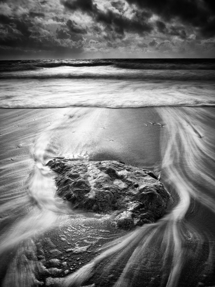 Colour one does it better for me. It’s almost monochrome anyway, just pale browns rather than greys. Foreground rock stands out more from the surrounding sand and the contrast of the flowing water on the right also stands out. But, if I had only seen the BW version I would have been happy. And 10 years ago you’d have been kicking yourself for loading te wrong film that morning.