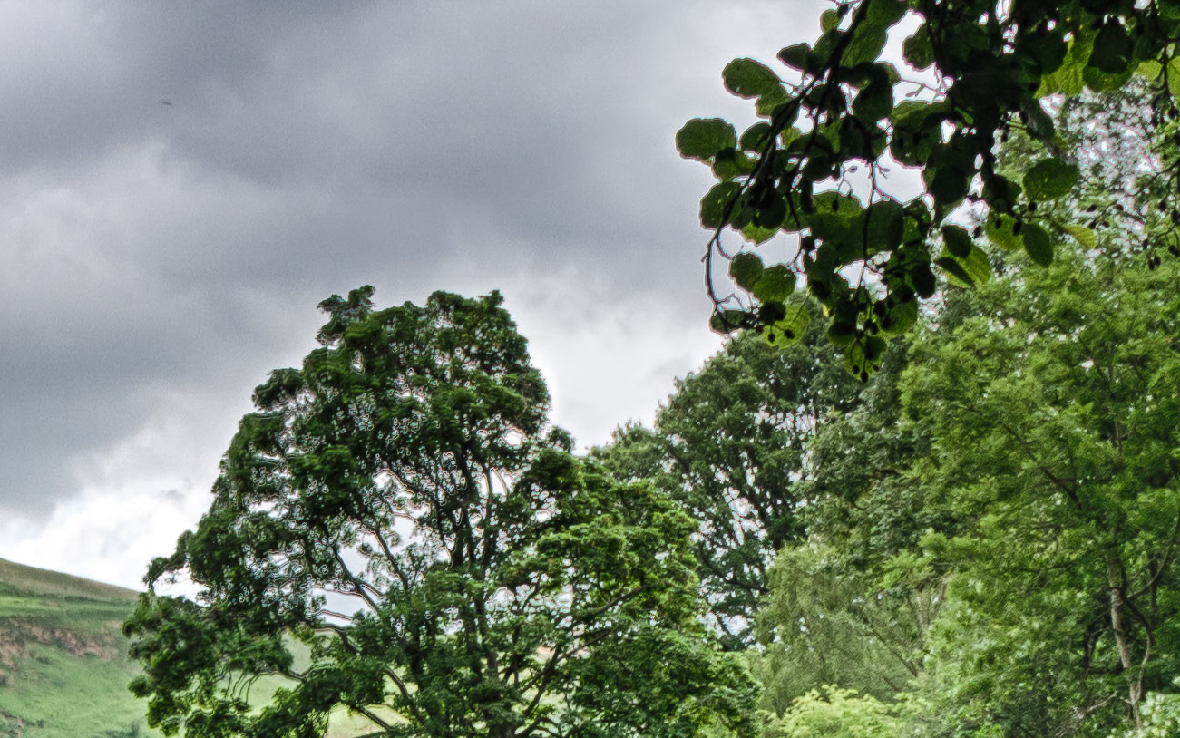 But when I looked at the upper part of the image I found a significant amount of blending artefacts in the leaves of the trees.