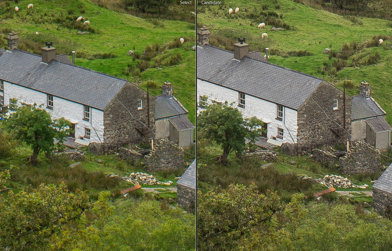 3. The image on the left appears – on my monitor at least (Mac 27-inch 5k) – to be of lower-resolution in terms of number of pixels. This is most obvious when looking at the edge of the outhouse roof to the right of the images – the pixels in the left-hand image appear considerably larger than the right-hand.