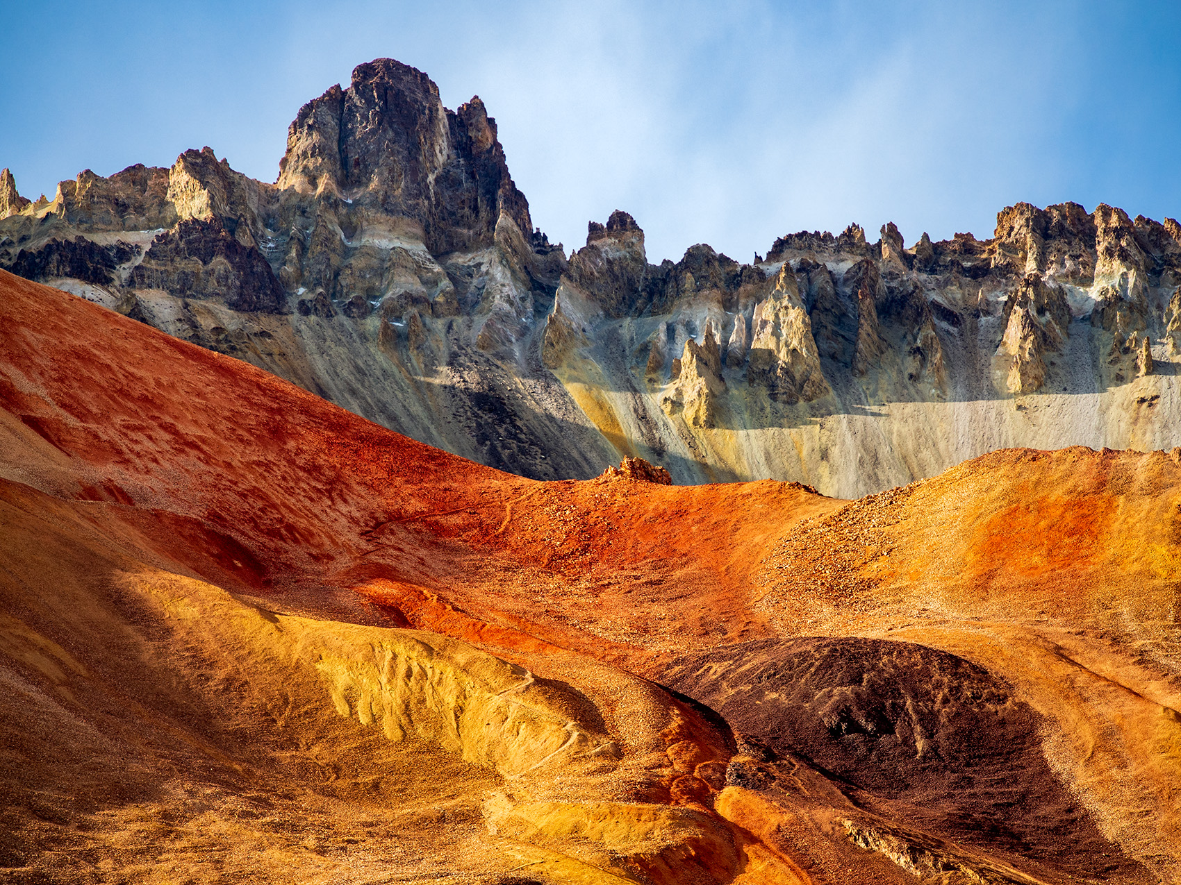 It was 2014 when I shot this volcano image and it’s languished on my hard drive ever since. The volcano’s in Bolivia and this shot was from our base camp about halfway to the summit. Yes, I had the “pleasure” of climbing this. The lower rim (the coloured part) is 4,900m and the top part is 5,300m; I wish I could remember the name though.