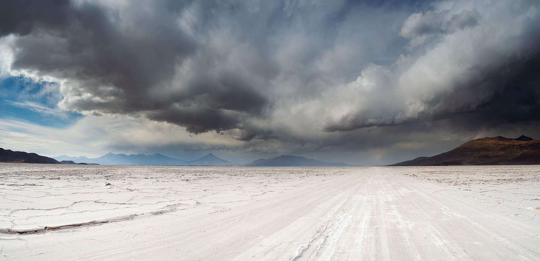 I can recall this scene vividly. We were driving across a vast salt flat when the sky started to darken, and the most amazing storm developed. It never rained on us but our guide (also amazed by the storm clouds) pulled over so we could photograph it. This is three frames stitched together in Lightroom and the detail and quality from the EM5 captured is quite amazing.