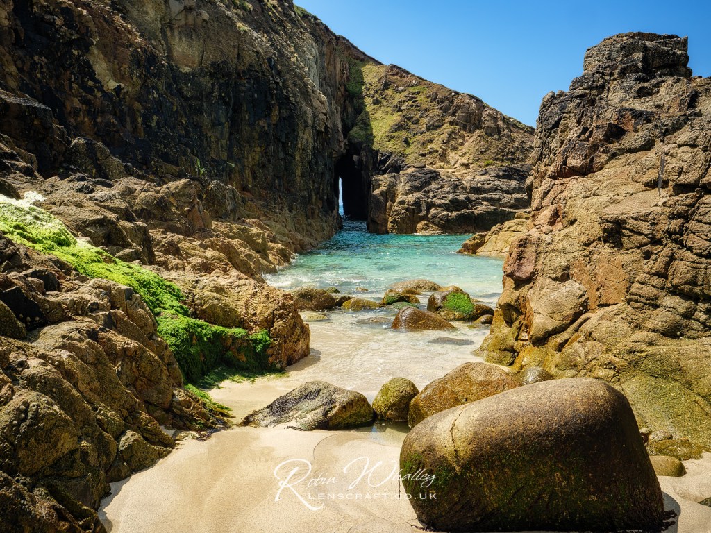 This is a hidden cove at Nanjizal Beach. It’s a lovely place and only a 40-minute walk from the theme park that is Lands End. Unfortunately (or fortunately) most visitors to Lands End don’t make it this far along the coast path.