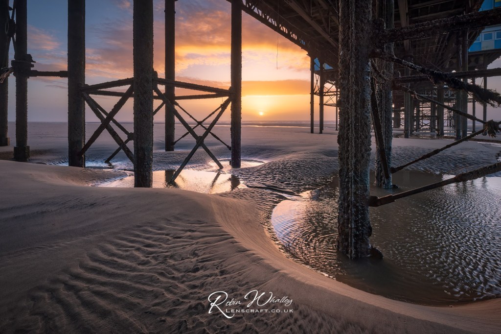 Despite the gloomy sky, this was good fun, and the weather finally improved. That’s when we made our way down to the beach to look for a suitable sunset composition. After some head-scratching and looking at different compositions, I settled on the area below the Central Pier. It was quite a challenge to work with, but I was able to capture the following image.