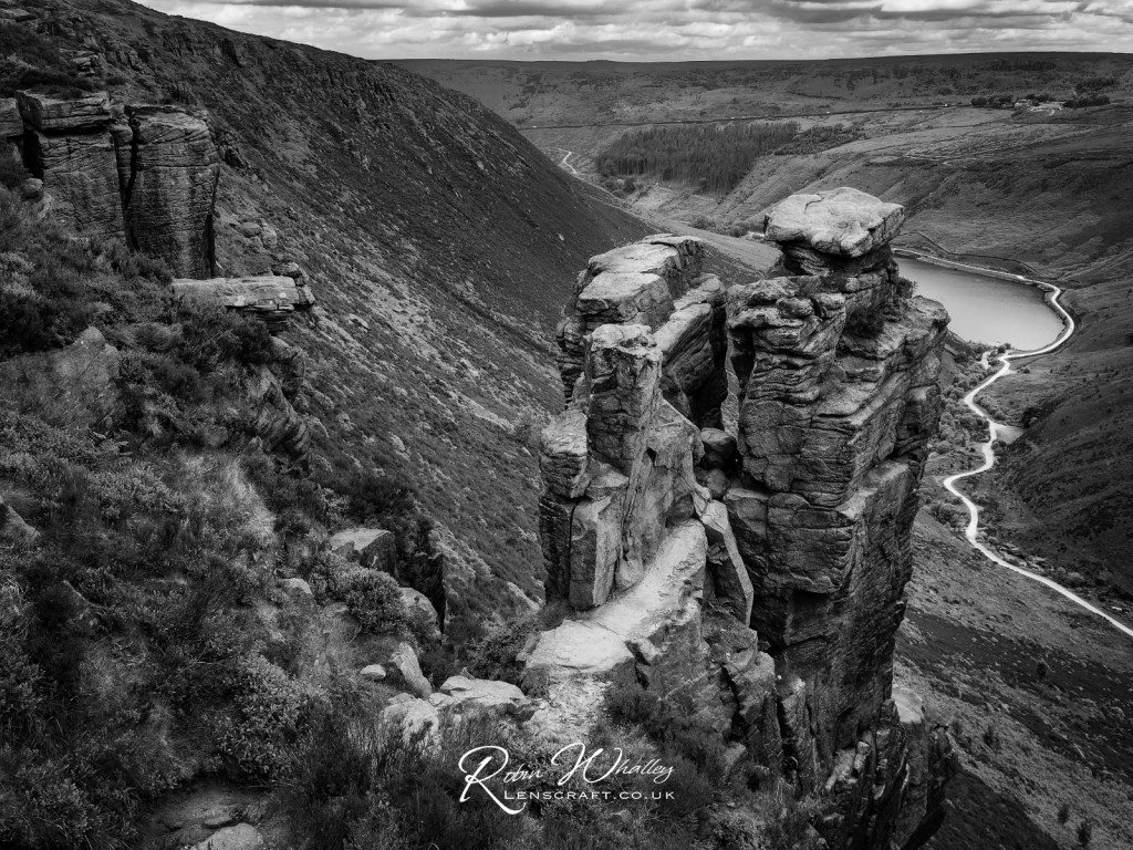 My knee is finally on the mend, although it is still giving me problems at times. I did manage to get out for a walk during the week and climbed up to the Trinnacle rock above Dovestones, and then along the edge above the reservoirs.